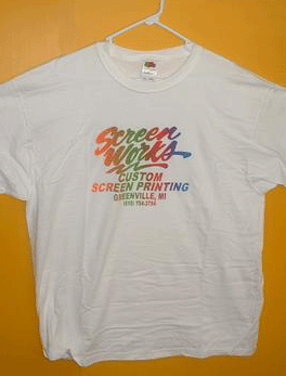 At Screen Works, we pride ourselves in our high quality of printing, customer service, and competitive pricing for our customers. We pay special attention to detail and will work with you to achieve the products you want. We print on t-shirts, sweat shirts, other textiles, stainless steel, and other flat stocks. Whether you already have a logo or design in mind, or you need our on staff graphic artist to design your print for you, we can assure you that you will be pleased with the printed results. For sports teams and organizations, we offer team lettering on apparel. We like to have a low 6 piece minimum order, and can handle any size of print jobs into the thousands. Our normal delivery time is two weeks or less, but we do have rush service available to help you meet your event dates. Below are some recent samples of shirts that we have produced. They include a variety of styles and techniques that we use such as sleeve printing, multi-color printing, custom blends, metallic ink, neon ink colors, and some local business logos. |